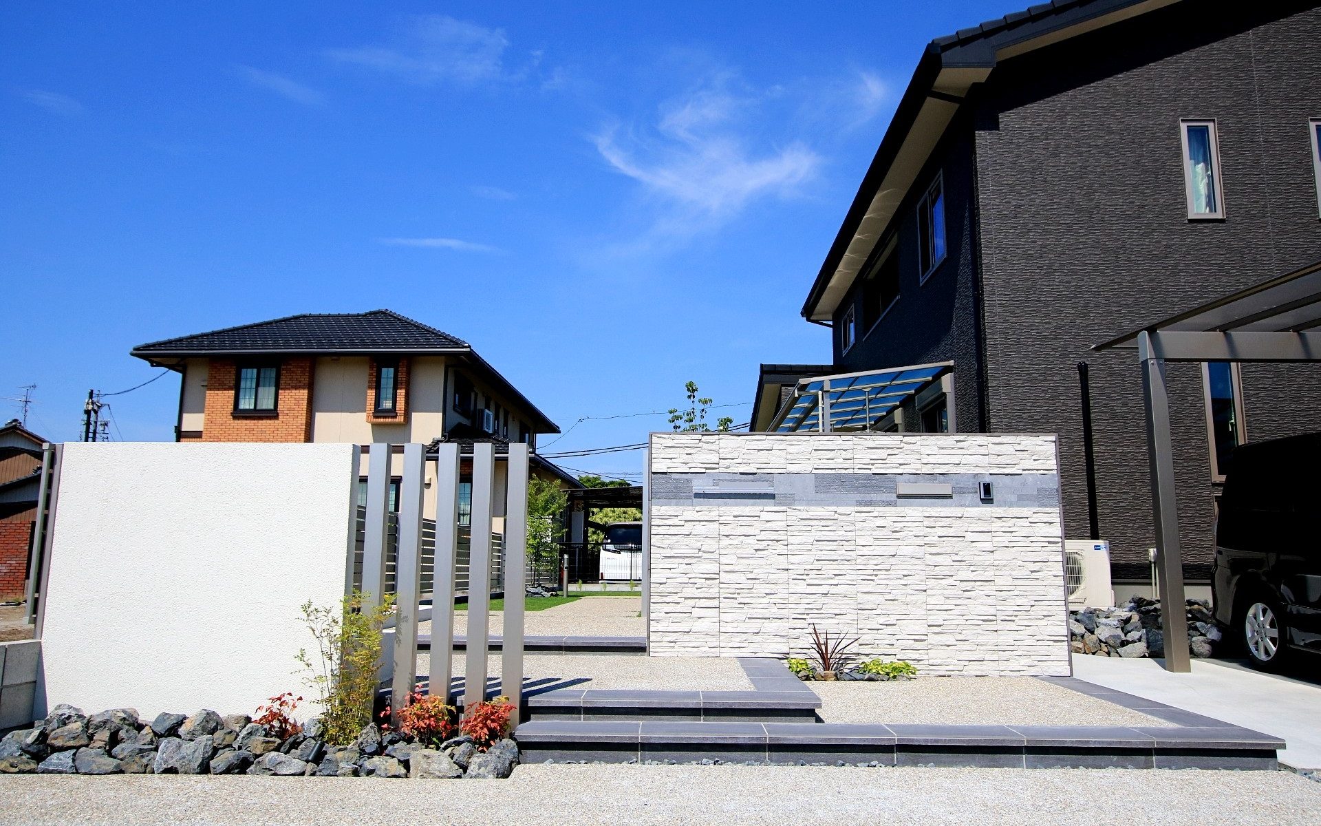 長久手市 U様邸 ナチュラルモダンなセミクローズ外構 素材はいたってシンプルです。   …