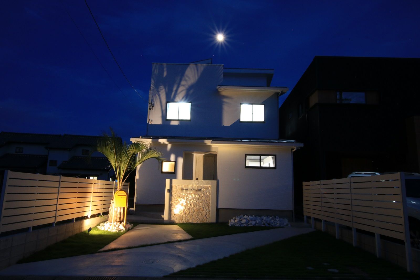 夜はライティングで、よりリゾート感を演出しています。