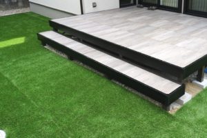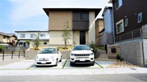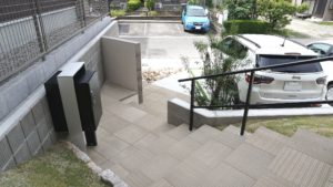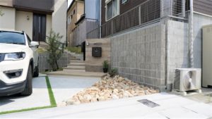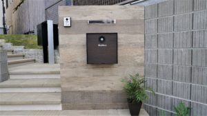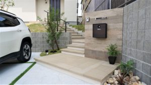 門柱・ポストは色のバランスを考えた木目調でデザイン。