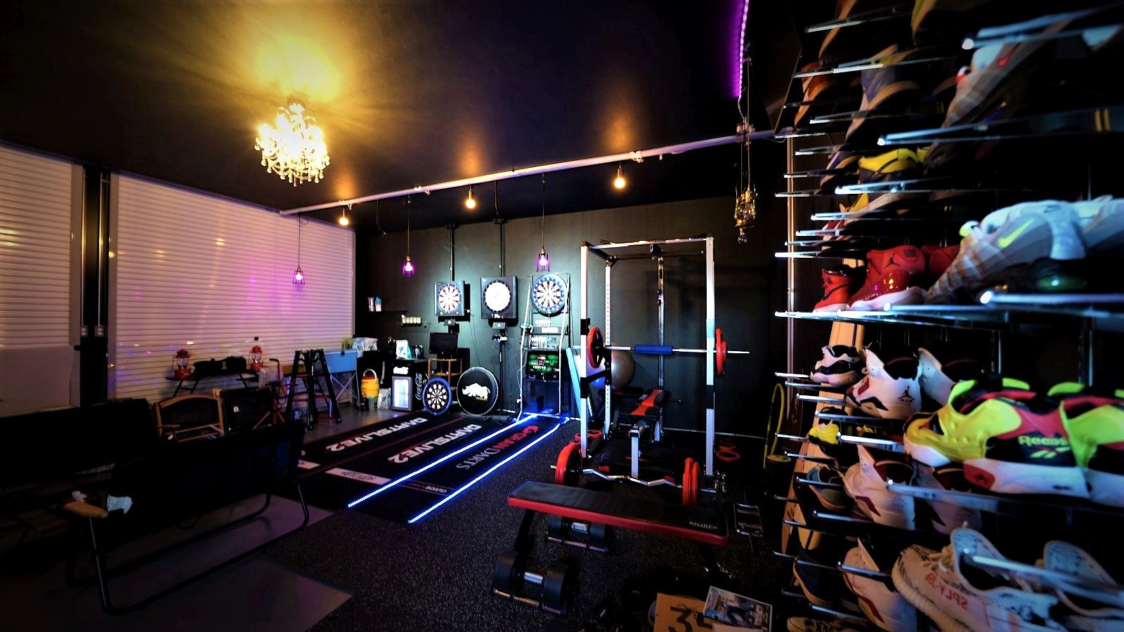 K市 K様邸 夢とロマンが詰まったガレージ。 自分だけの趣味を集めました。 ダーツにトレーシングマシン、スニーカーなど、多趣味な方にはた …