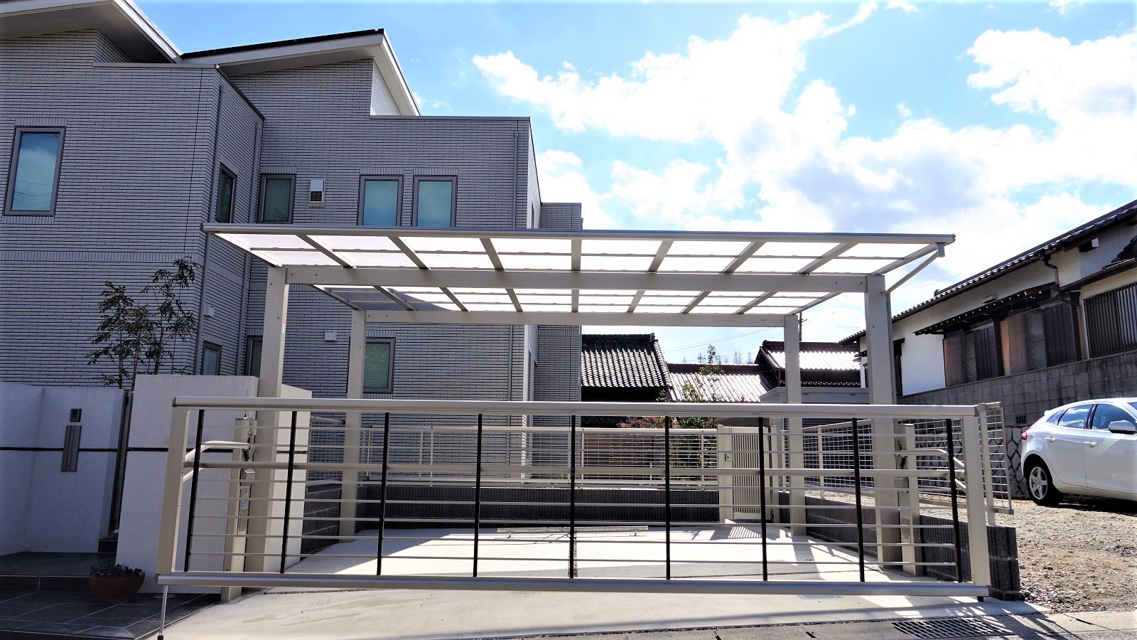 シンプルなカーポートに使い勝手の良い電動アップゲート。