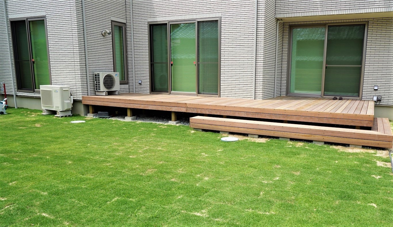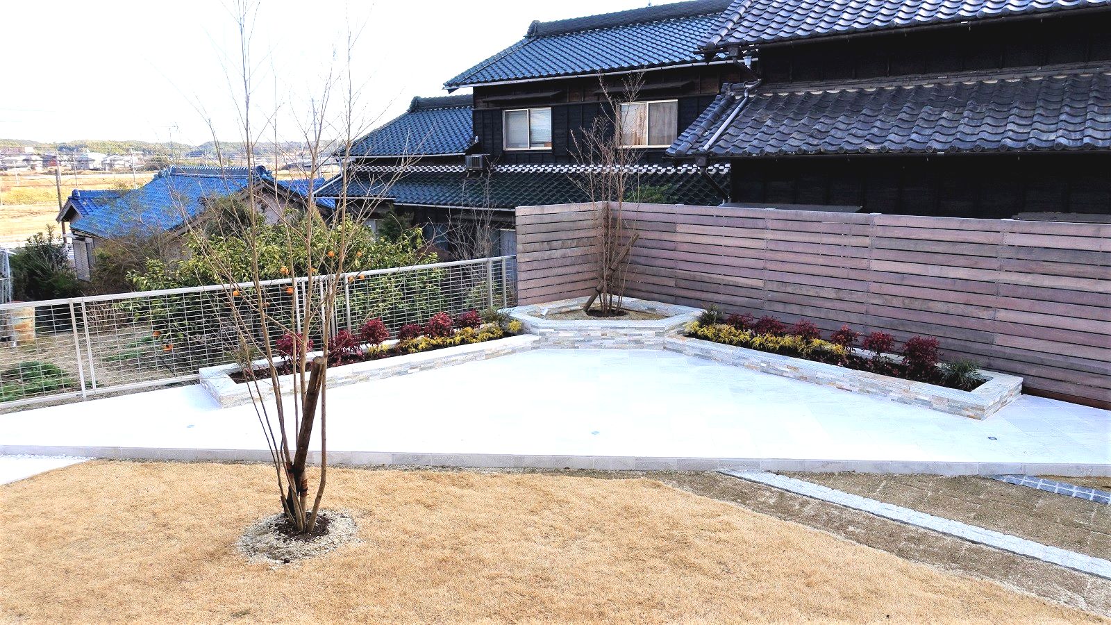 庭部にはタイルステージを造作し、樹木、花壇を配置することで、快適な日常を演出。