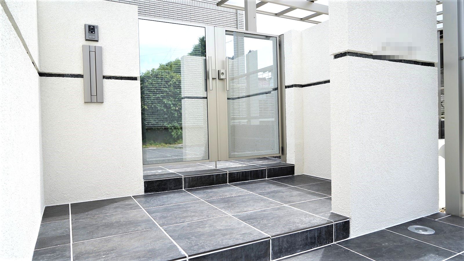 門扉は、すりガラス調のデザインにし、高級感を演出。