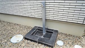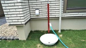 立水栓は、タイル造作パンと、陶器パンの二種を使用。