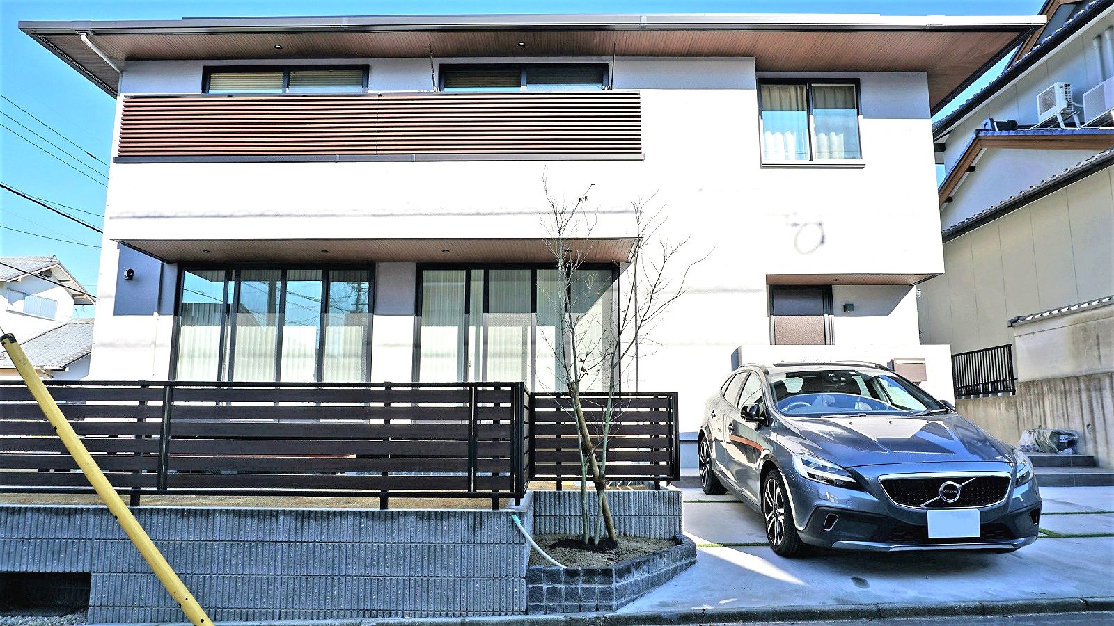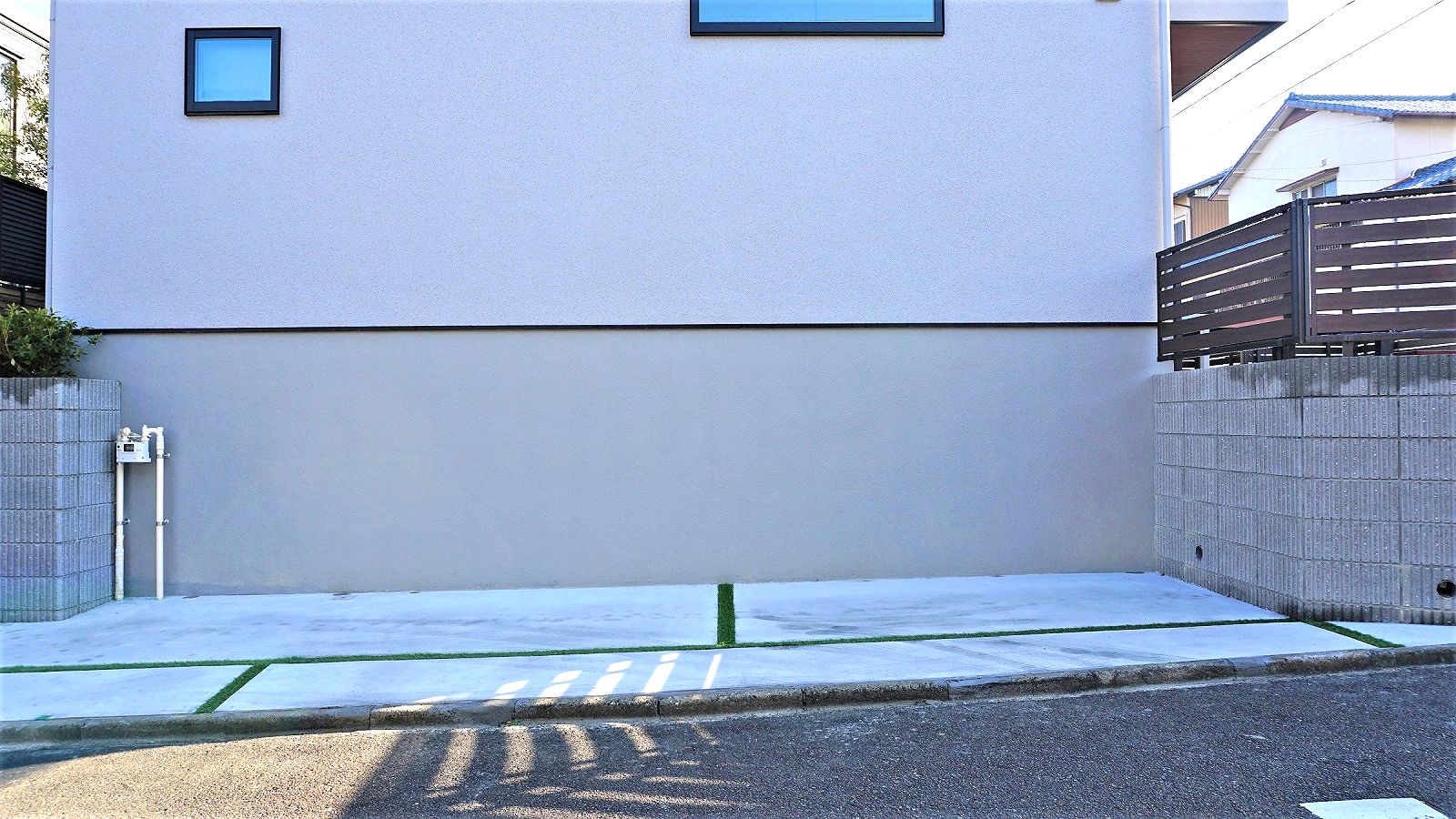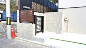 門柱は杉板RC風に仕上げ、グレードが高いファサードになっています。
