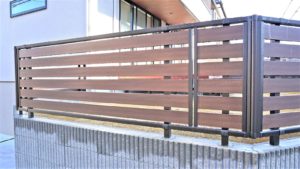 ご住宅のベランダと、フェンスを横格子の木目調で統一感を出しています。