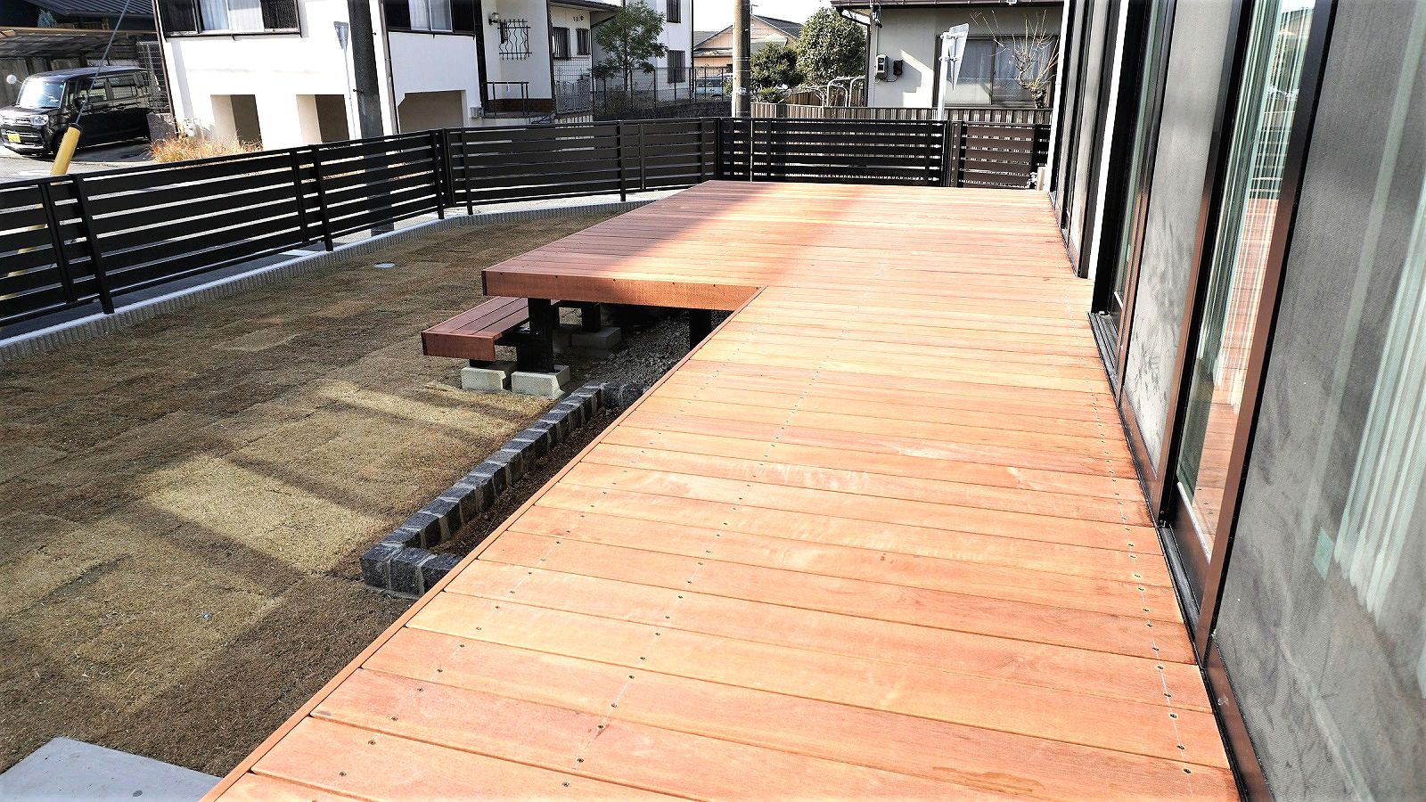 ウッドデッキは グレードの高い天然木のアマゾンジャラ。