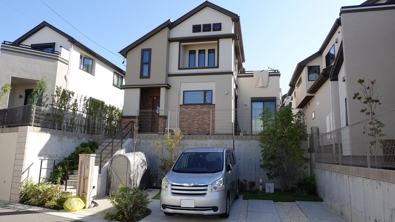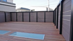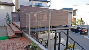 頑丈なカーポートを造作し、その上にウッドデッキの庭を作りました。