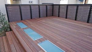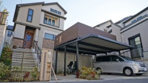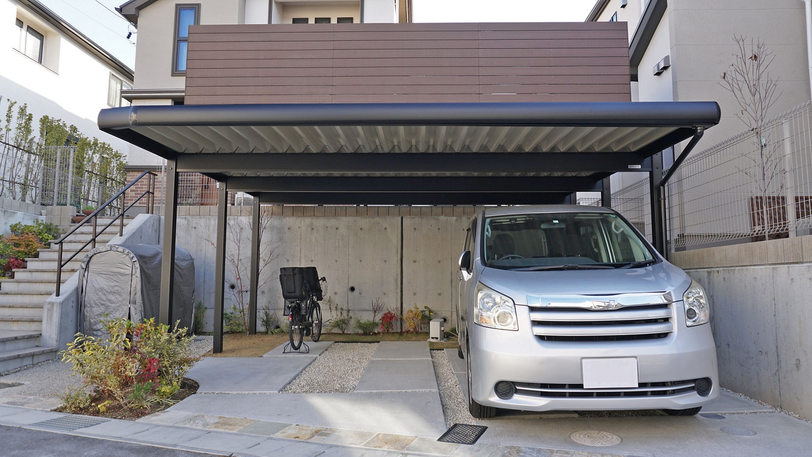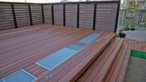 カーポートで暗くなってしまうため、強化ガラスを埋め込んでいます。