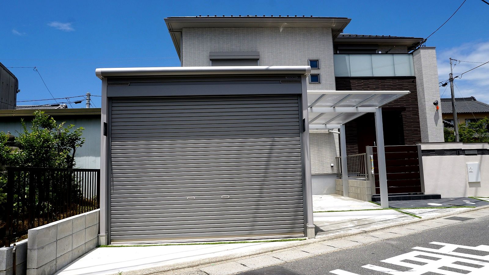 投稿日: 存在感のあるガレージと特徴的な門柱のセミクローズ