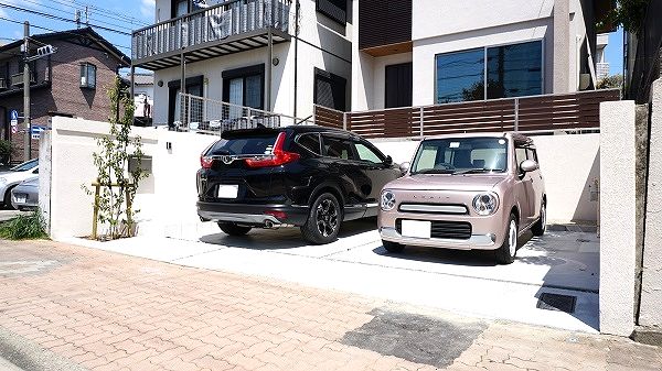正面のフェンスは半目隠しの「YKK ルシアスフェンス」を設置。