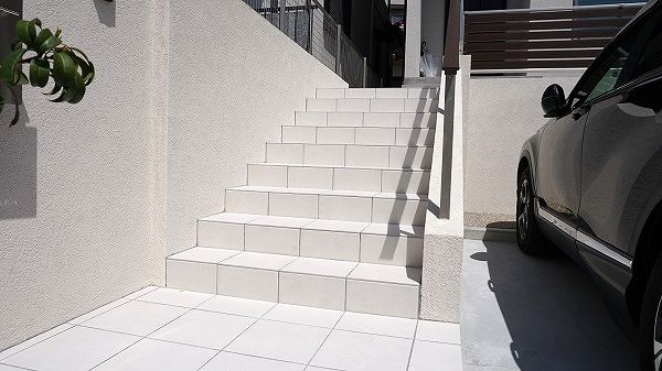 階段部分は白タイルの「ニッタイ ロッセクラシコ」で統一。
