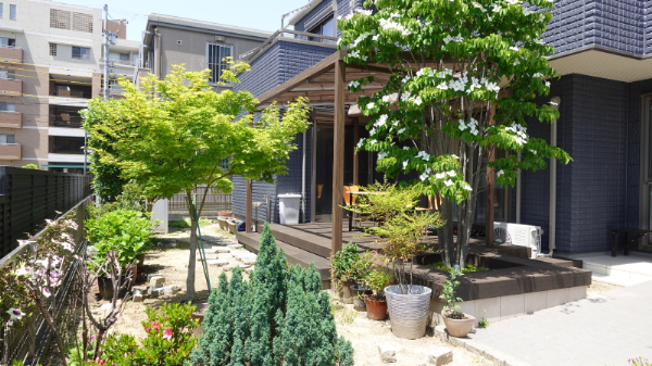豊田市 O様邸 ウッドデッキの改装+テラス設置 経年劣化による汚れや、壊れて使用できなくなったデッキを 外壁塗装とともに外構も新しくリフ …
