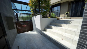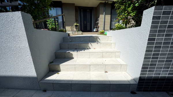 階段ポーチの側面は塗装しなおし、タイルには『ニッタイ ローク』を使用。