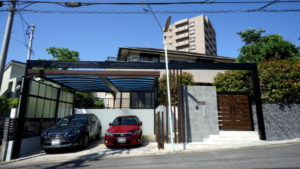 駐車場側にもスライド門扉『三協 レナード』を取り付け