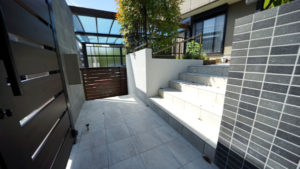 階段ポーチの側面は塗装しなおし、タイルには『ニッタイ ローク』を使用。