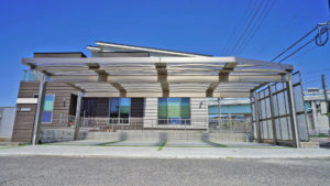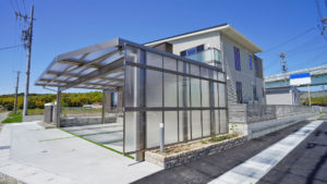 正面のカーポートには『三協 Uスタイルアゼスト』を使用。