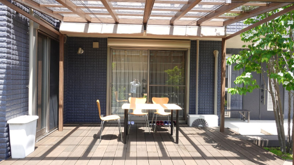 デッキではお子さんが外で勉強したり、家族でくつろいだりと