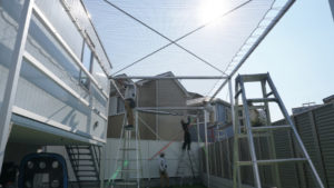 ネットは8本の柱で支えているため、倒れることはありません。