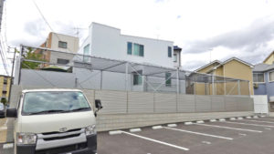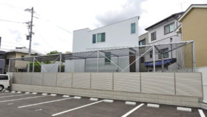 横の駐車場には人が多く出入りするので、ご住宅が見えないように