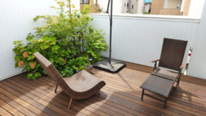 中庭のデッキも新しく天然木にリフォーム。