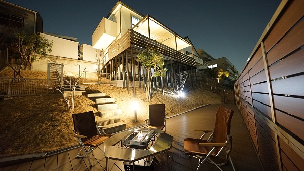 N市 A様邸 グランピング施設?? 庭とは思えないほどの眺望。 既存で1m程度のウッドデッキ …